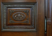 Дверь с массивом, ковкой и стеклом, резьбой, карнизом