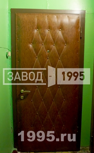 Двери отделаны изнутри дутой искусственной кожей с рисунком в виде ромбов. С внешней стороны в качестве отделки использован МДФ. Установлены два замка («Гардиан» и «Апекс»).