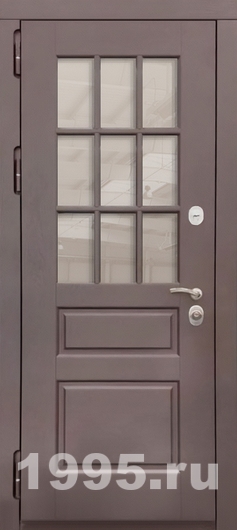Серая дверь окрашенная по RAL со стеклопакетом и решеткой