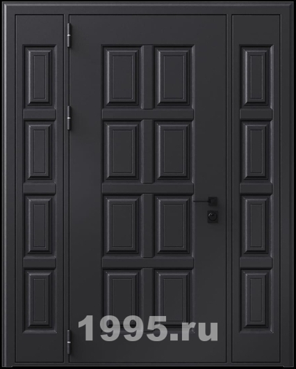 Стальная дверь с металлофиленкой, вставками по бокам и порошковым окрашиванием RAL 9004 (тип №1) Арт: 866