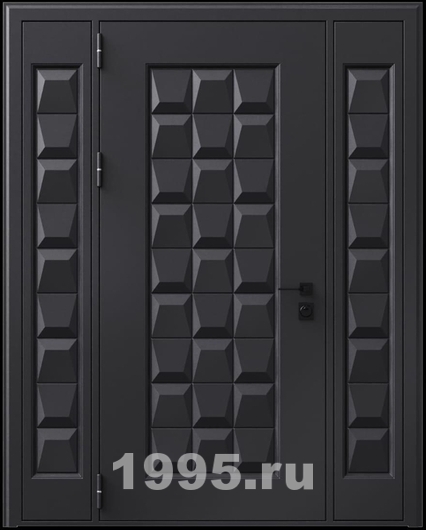 Стальная дверь с металлофиленкой, вставками по бокам и порошковым окрашиванием RAL 9004 (тип №5) Арт: 870