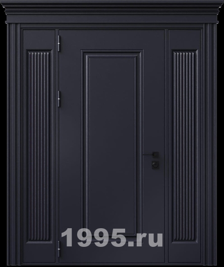 Стальная термодверь с металлофиленкой, вставками по бокам, карнизом и порошковым покрытием RAL 7016 (тип №2)